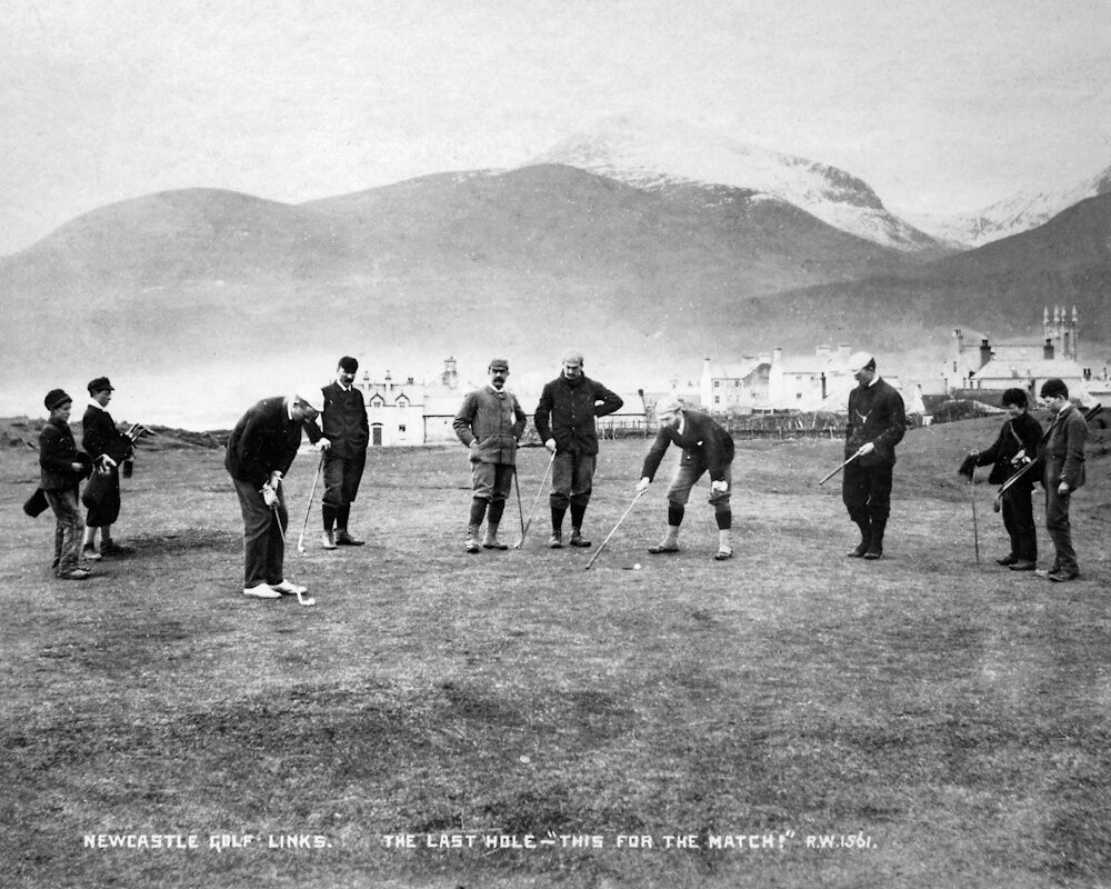 The Royal County Down Golf Club was founded in 1889 by a group of influential business and professional men from Belfast. There is some evidence to suggest that even before then a rudimentary form of golf was being played by the townsfolk on the rabbit warren at Newcastle. However, it was the development of a railway line from Belfast to Newcastle by the Belfast & County Down Railway and the emergence of Newcastle as a desirable seaside resort in Victorian times which provided the impetus for the first formal golf course.