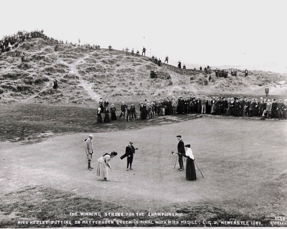 A golden era of Irish dominance in ladies’ golf started in 1899 at County Down. The Ladies’ Golf Union was founded in 1893 and it ran the British Ladies’ Open Amateur Championship thereafter until its merger with The R&A in 2016. The championship has been played at Newcastle a record nine times. In 1899 seventeen-year-old May Hezlet from Royal Portrush defeated Rhona Adair of the Killymoon club in the final of the Irish Ladies’ Championship at County Down. The following week, also at Newcastle, the British Ladies’ Championship was played and little May won the first of her three British Ladies’ titles. She won again at Deal in 1902 and returned to County Down to lift her third title in 1907. Rhona Adair also won the British Championship in 1900 and 1903 and lifted the Irish title in 1902 at Newcastle. Four other Irish players were losing finalists over those years. The Curtis sisters, Harriot and Margaret, played in the 1907 event when Harriot was reigning U.S. Amateur Champion while Margaret would win the U.S. title on her return to America in 1907 and on two further occasions. In 1932 they presented the Curtis Cup for the biennial match.