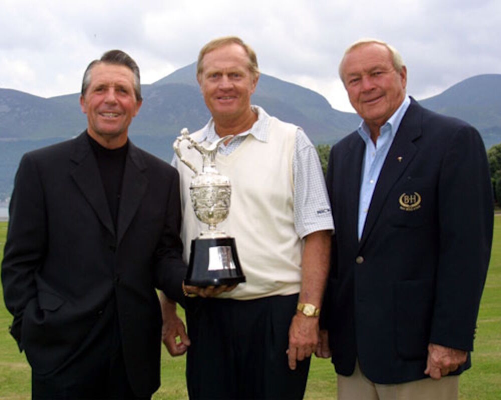 The Senior British Open was first held in 1987 and came to Royal County Down in 2000 when Ireland’s Christy O’Connor Jnr, the home favourite, won. The club was invited to host for two more years and in 2001 five former winners of The Open Championship competed, including the 'Big Three' of Jack Nicklaus, Arnold Palmer and Gary Player. Nicklaus played wonderful golf tee to green but his putter let him down and he finished in 3rd place, 3 strokes behind the Australian, Ian Stanley, who defeated Bob Charles from New Zealand at the first tie-hole.