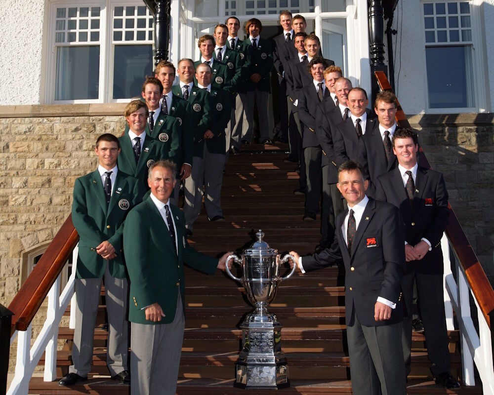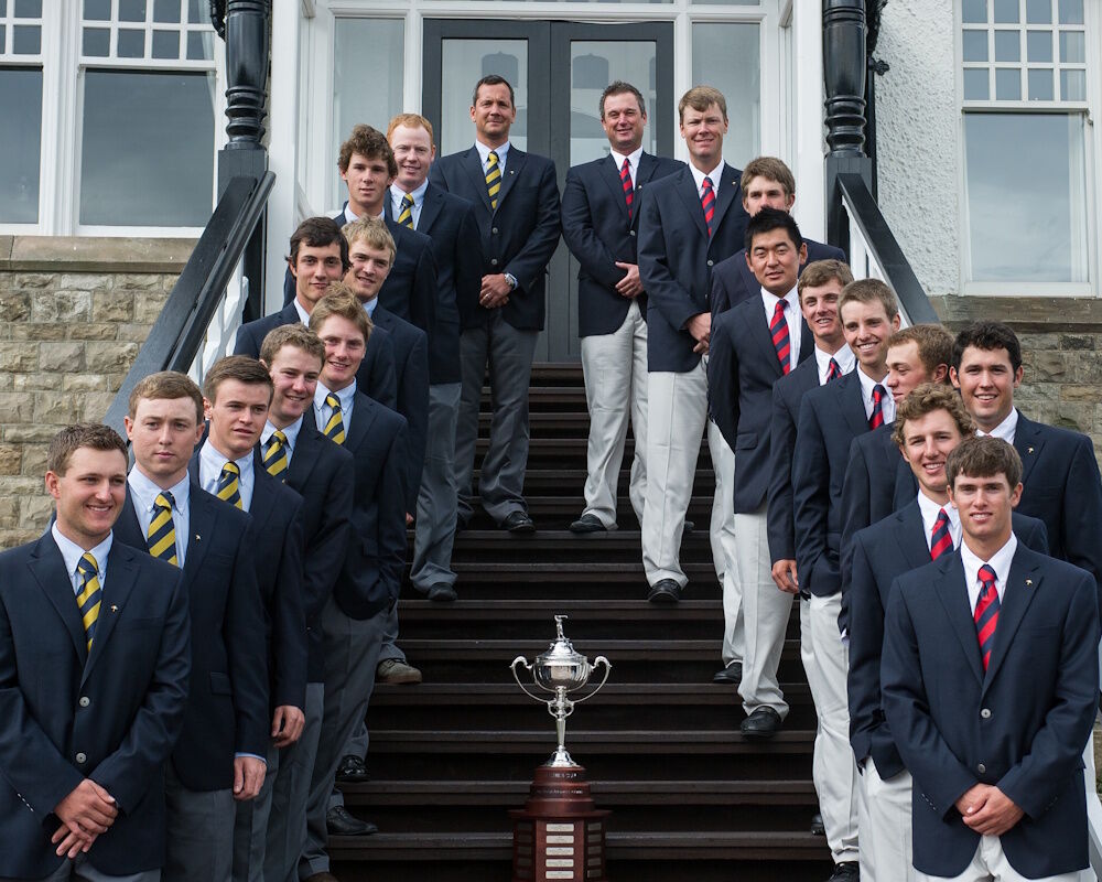 Arnold Palmer presented a Cup bearing his name in 1997, for play between U.S. and GB & I college golfers. The GB & I team composition was altered in 2003 to include European golfers, and in 2018 female golfers came onboard. The 2012 match at Royal County Down witnessed Europe overturning a 6-10 deficit to take 7½ of the available eight points in the last-day singles. Undoubtedly the home team coped better with the very blustery conditions. Several players subsequently turned professional and had varying degrees of success on the PGA and European Tours with Justin Thomas winning two majors to date.